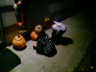 Later that evening we went to Aunt Lindsay's ward's Trunk-or-Treat. Bailey didn't really get how it worked and she just wanted to hang around the van. Taysum loved it though! He really liked going around saying, "Trick-or-Treating!" He liked staying at the van and passing out candy as well. He was giving it out of his own bag!